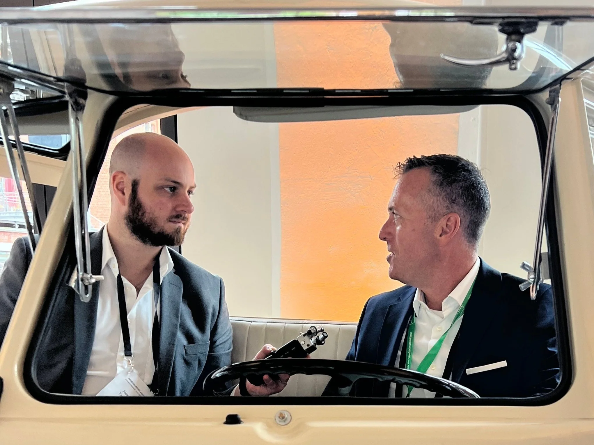 Dort zeichnen wir in entspannter Atmosphäre Kurzinterviews mit Besuchern des Events zu aktuellen Themen auf.